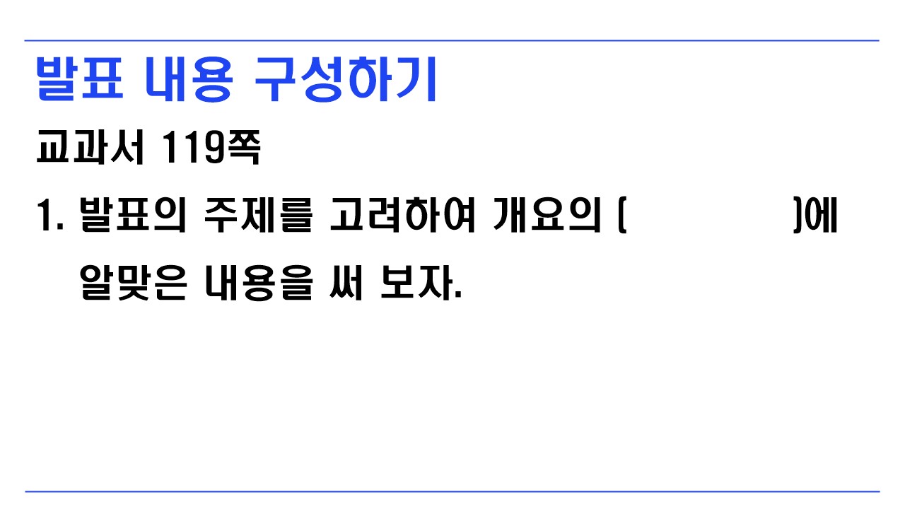 3차시는 교과서를 보며 발표문의 구성 및 내용 파악하는 수업을 진행했다.