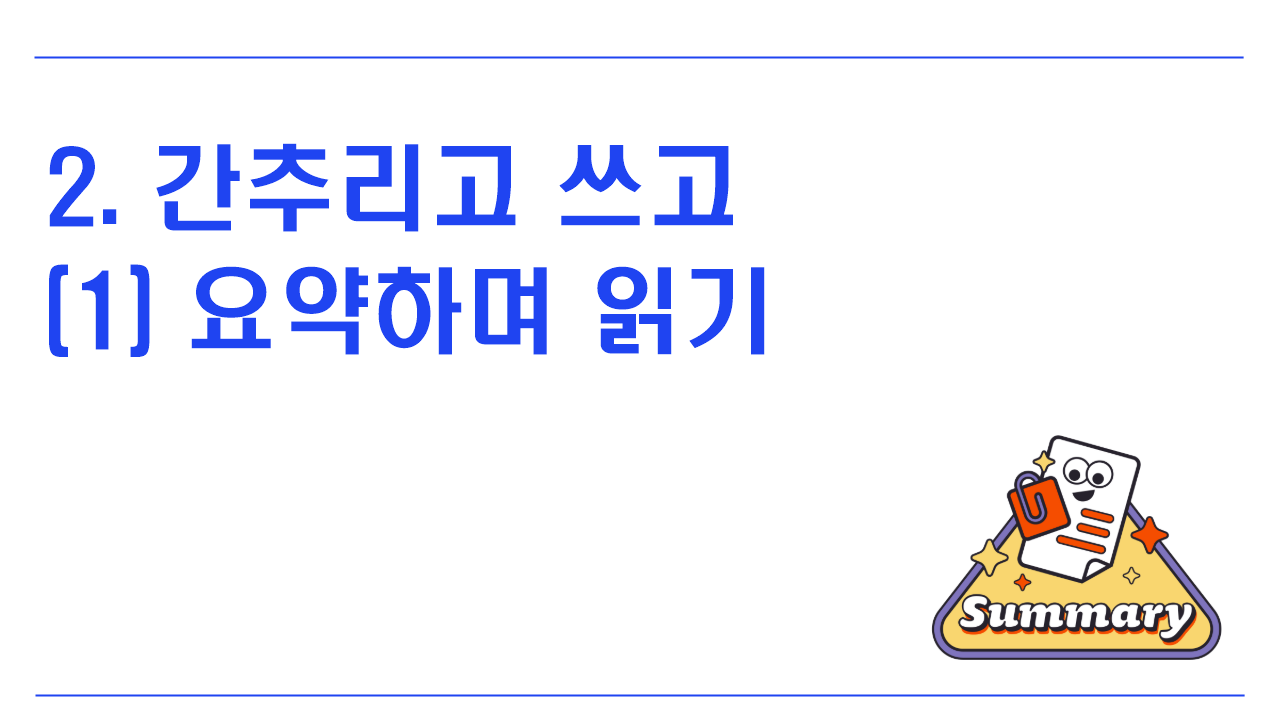 [9국02-02] 읽기 목적과 글의 구조를 고려하며 글을 효과적으로 요약한다.