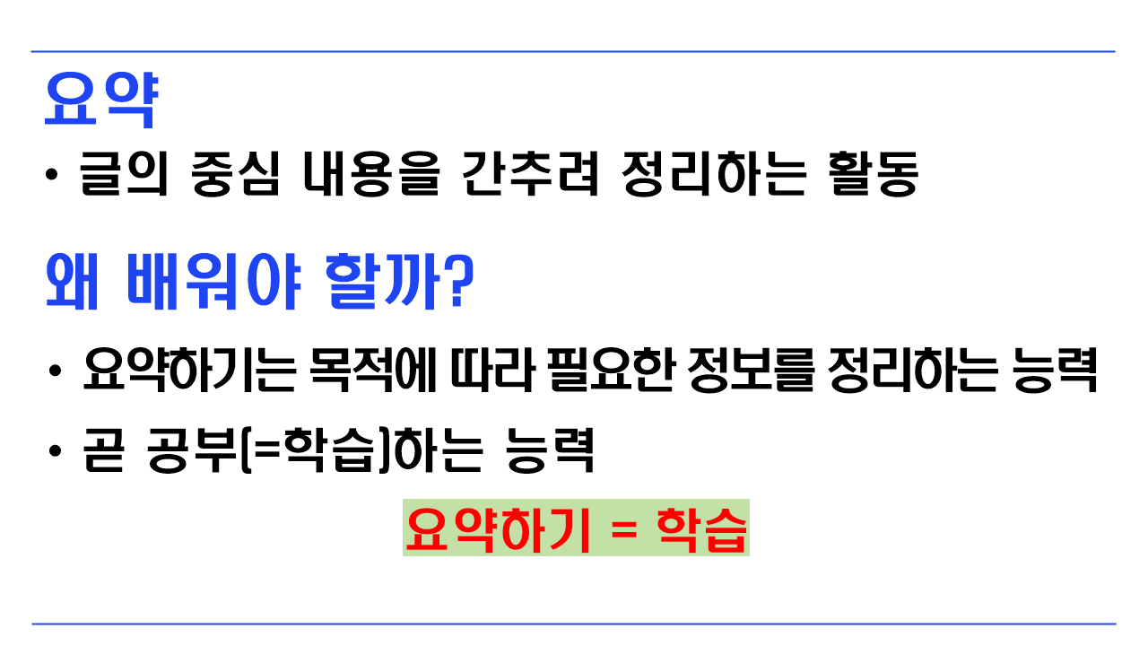 국어 수업에 있어서 가장 중심을 두는 성취기준이 글의 내용을 요약하는 성취기준이다.