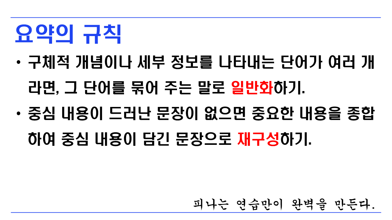 2차시에는 요약하기 전략 중 일반화하기와 재구성하기를 학습했다.